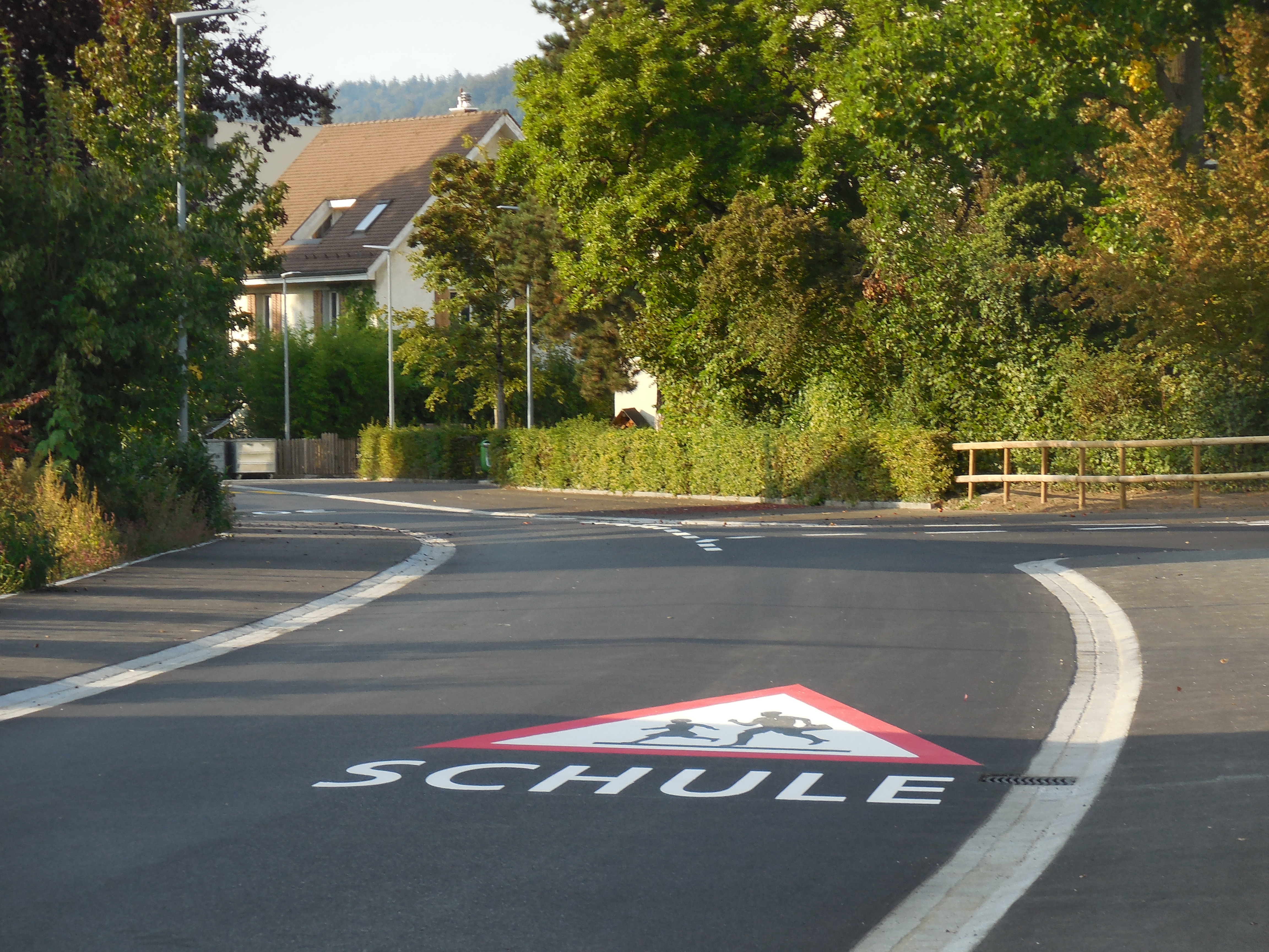 Über de noi Stroosebelag in de Winkelried- und de Etzelstroos hei mir scho vor einige Woche brichtet. Gester und vorgester sind jetzt au Fahrbahnmarkierige ufgmolet worde. De Rächtsvortritt isch jetzt guet z gseh, vor de Schuel hets Warnhiwiis uf d Stroos gmolet und au Fussgängerüberwäg sind markiert worde, um d Sicherheit vo de Schüler z erhöche. Zudem het d Gmeind bi de Iimündig vo de Staffel- in d Etzelstroos und am Ecke von Chindsgi Alteburg, bi de Iimündig vo de Etzel- in d Winkelriedstroos zwei noii Sitzplätz lah erstelle.