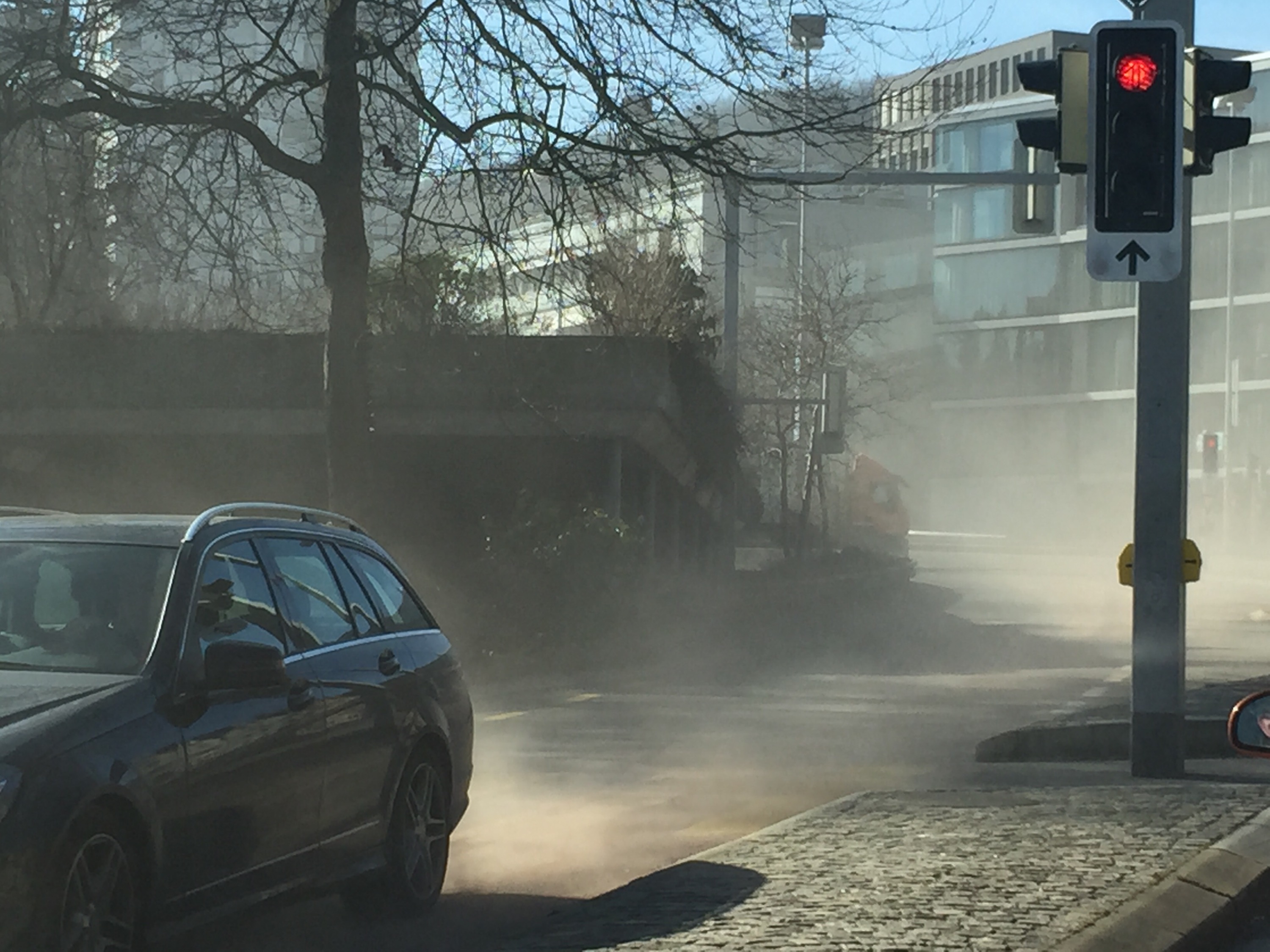 Hüt am Namittag isch de Vercher uf der Melligerstroos und über d Hochbrugg starch beiiträchtiged (gsi). En Ölspur het d Stützpunktfüürwehr zwinge, Ölbinder uf d Stroos uszbringbe, wo uf em Schuelhuusplatz zu Staubwolke und z Bade zu Stau gführt het.