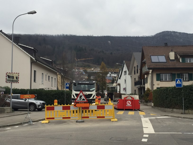 De Strosseabschnitt isch sofort gsperrt worde und d Leitig repariirt. Hüt wird de Deckbelag iibaut und wenn alles guet lauft, cha d Stroos hüt am Abe wider befahre werde.