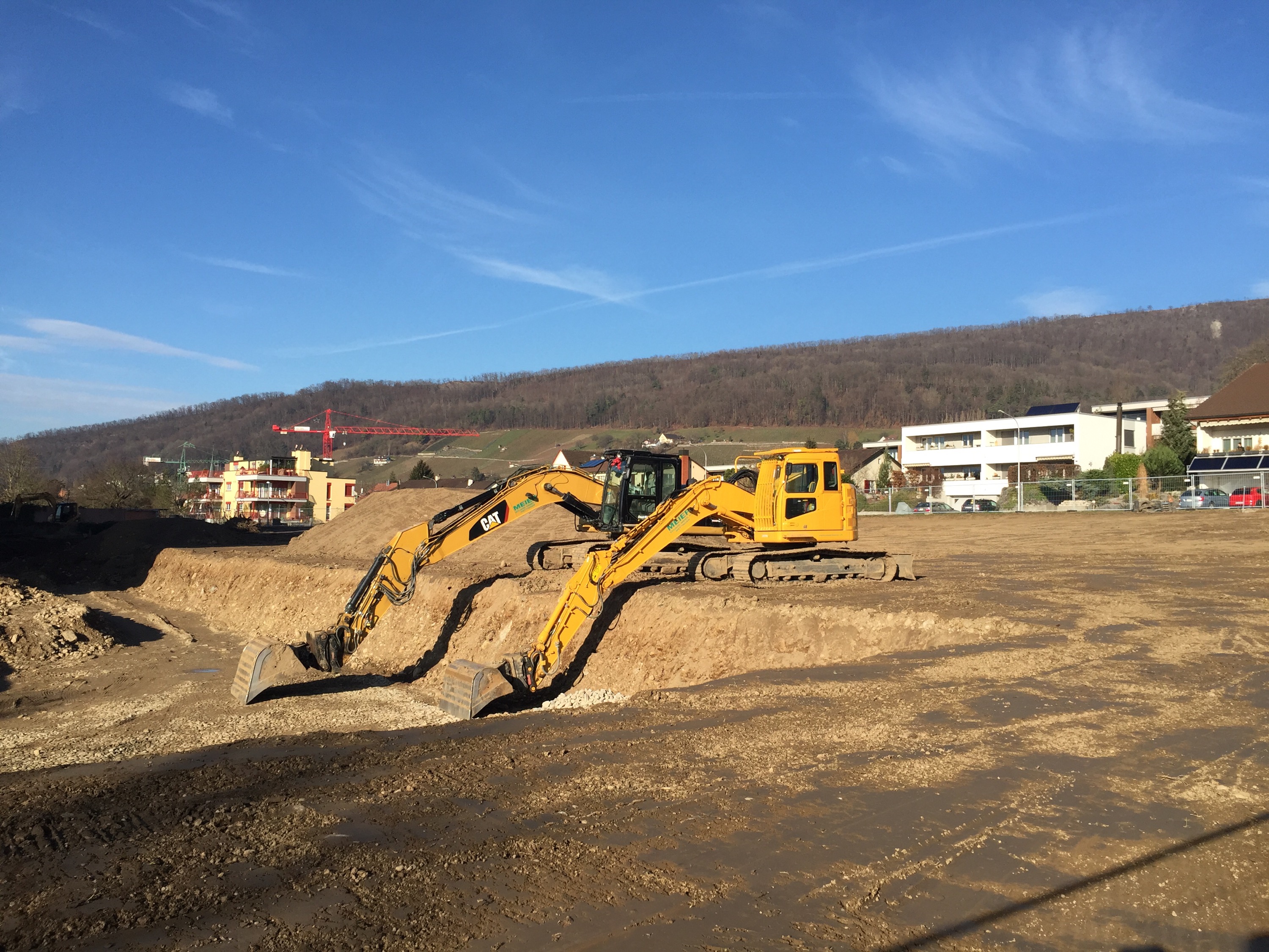 Geschter, am 6. Januar 2016 het de Spatestich statgfunde. S Land ghört de Gmeind Wettige, wo es de beide Bauherre im Baurecht überloh het.