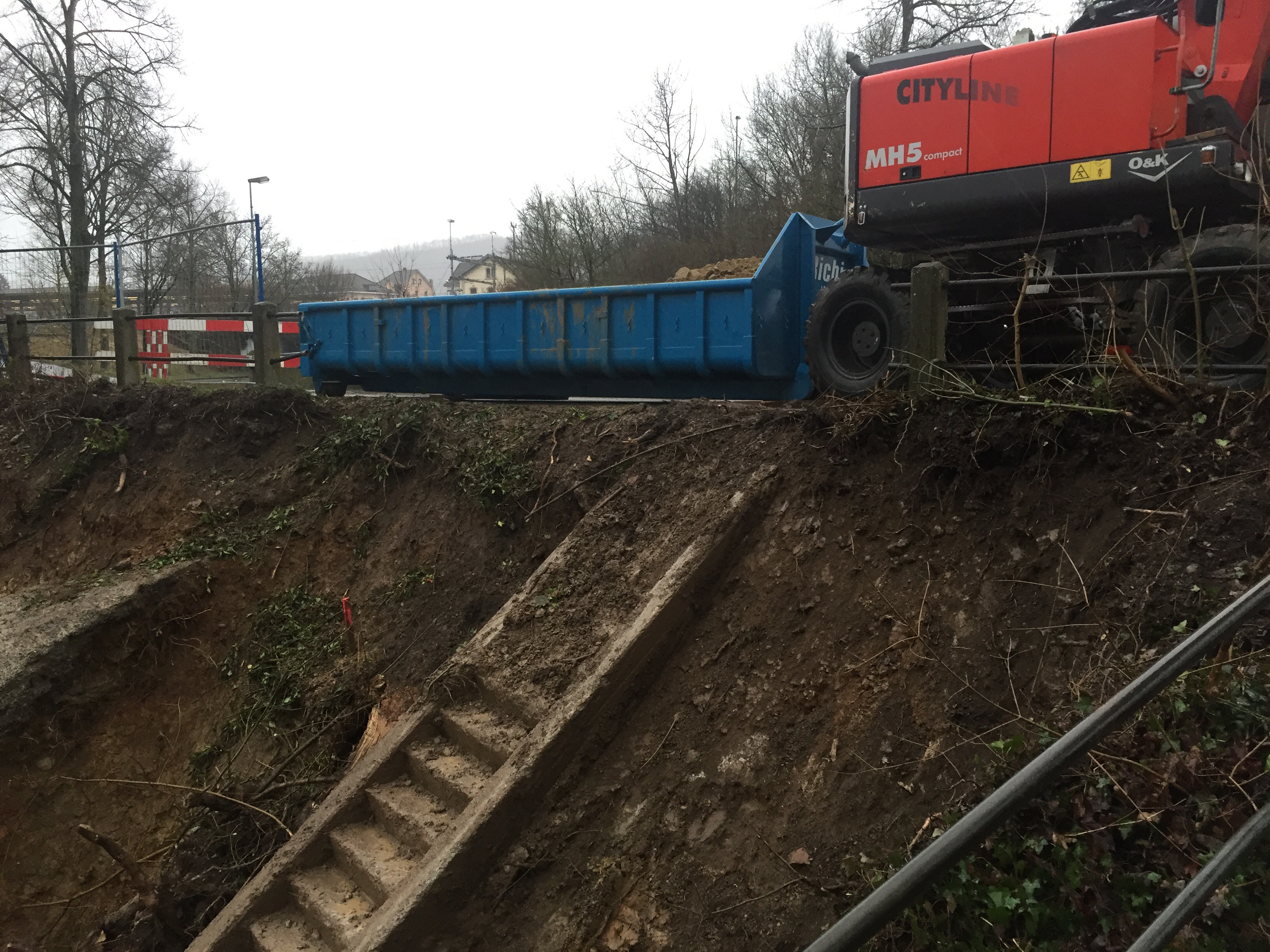 Jetzt isch wider en Bagger ufgfahre und het d Stäge im obere Abschnitt frei glägd. Wi de Ziitplan für di witere Bauetappe usgseht, het de Bauherr no nöd chönne säge, aber mir werde es Aug druf bhalte und oich witerhin informiire.