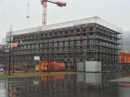 Bisher finded de Unterricht für di 5. und 6. Klasse noch in de Container statt, wo bim Margeläckerschuelhuus ufgstellt sind, aber im Frühjahr 2017 söll d Schuel in s noie Gebäud zügle, wo dete baut wird, wo s alte Schuelhuus Zehntehof gstande isch. De Rohbau vo dem noie Schuelhuus isch jetzt fertig. In de meischte Rüüm sind sogar scho d Faischter dinne. De Noibau wird öppe 25.5 Millione Franke koschte und wird öppe 400 Chind in 18 Schuelzimmer Platz biete. Nebe dene Rüüm, wo im nördliche Trakt unterbrochd sind, gits im südliche Trakt spezialrüüm, wi d Aula, de Singsaal, Handarbeitsrüüm und s Lehrerzimmer.