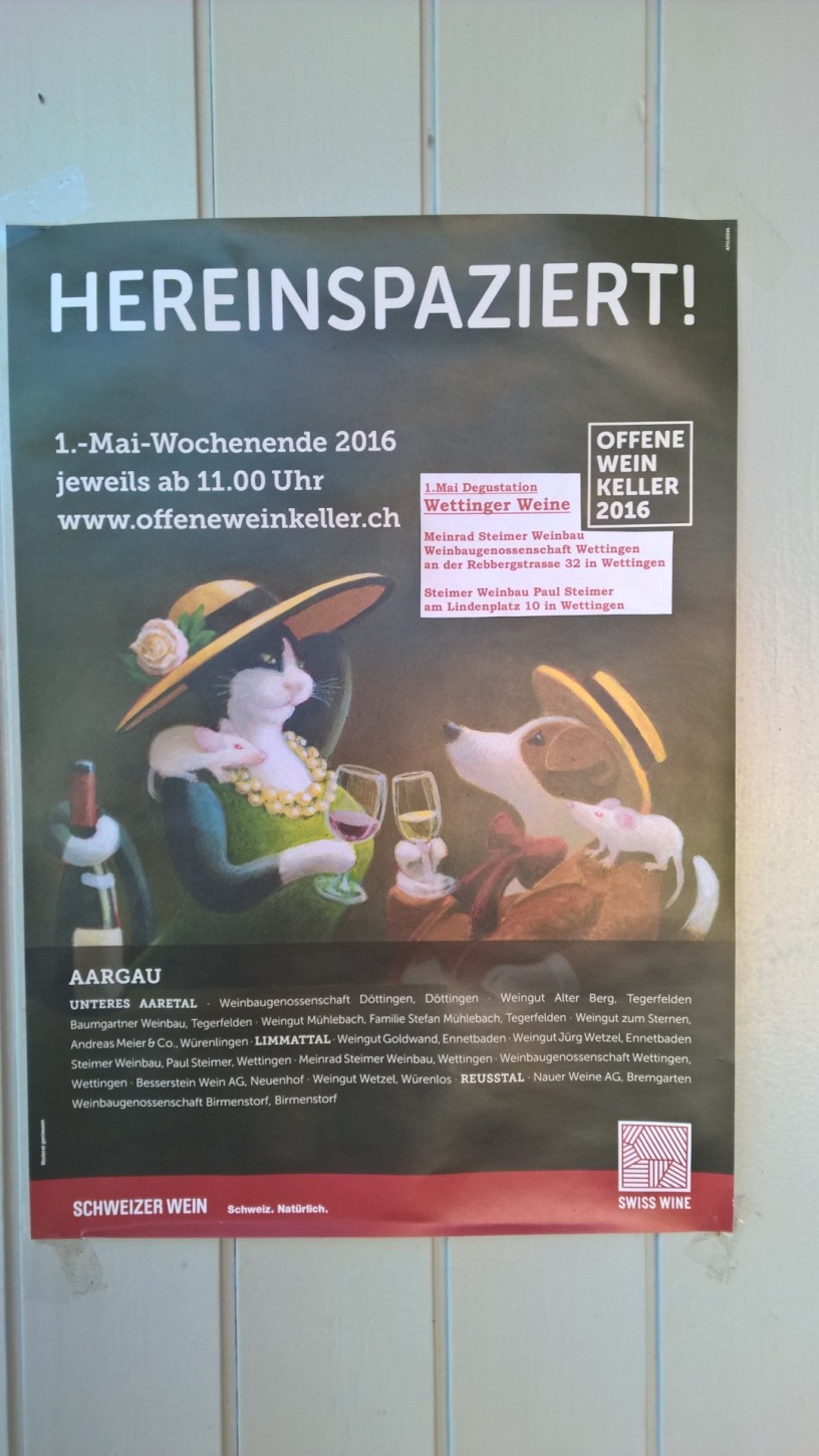 Am 1. Mai, em Tag vo de offne Wy-Chäller händ über 230 Winzer us de Dütschschwyz ihre Chäller offe gha. D’Wettiger Winzer händ ihri Wy im Wy-Chäller vom Meinrad Steimer und uf em Lindeplatz bim Paul Steimer präsentiert.