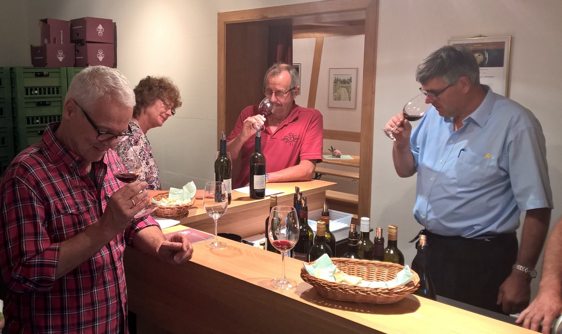 «Mer häd viel probiert, diskutiert und die einzelne Wy mitenand verglichee», so de Präsident vo de Wybaugnosseschaft gegenüber de WN. «Bsonders guet acho sind die vier neue Wettiger Wy: de BLANC DE NOIR vo de Wybougnosseschaft, s’Cuvée Gamaret vom Meinrad Steimer, de im Barrique usbouti Weisse “Engel” vom Jörg Engel und de Pinot Noir Künschtlerwy mit de Etikette vo de Nora Dreissigacker.»