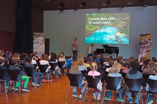 Im Rahme vo sim 25-jährige Jübiläum als Gschäftsführer und –inhaber vo de Huser Gebäudetechnik AG het de Daniel Huser rund 300 Wettiger Schüelerinne und Schüeler mit eme Gschänk überrascht: am Bildigsalass «Wasser – ein reines Vergnügen» hends vell über swertvolle und choschtbare Nass erfahre. De Referent Ernst Bromeis, Wasserbotschafter und Grenzschwimmer, het s Publikum uf sini faszinierende Expeditione mitgnoh und hets motiviert im respektvolle Umgang mit Wasser.