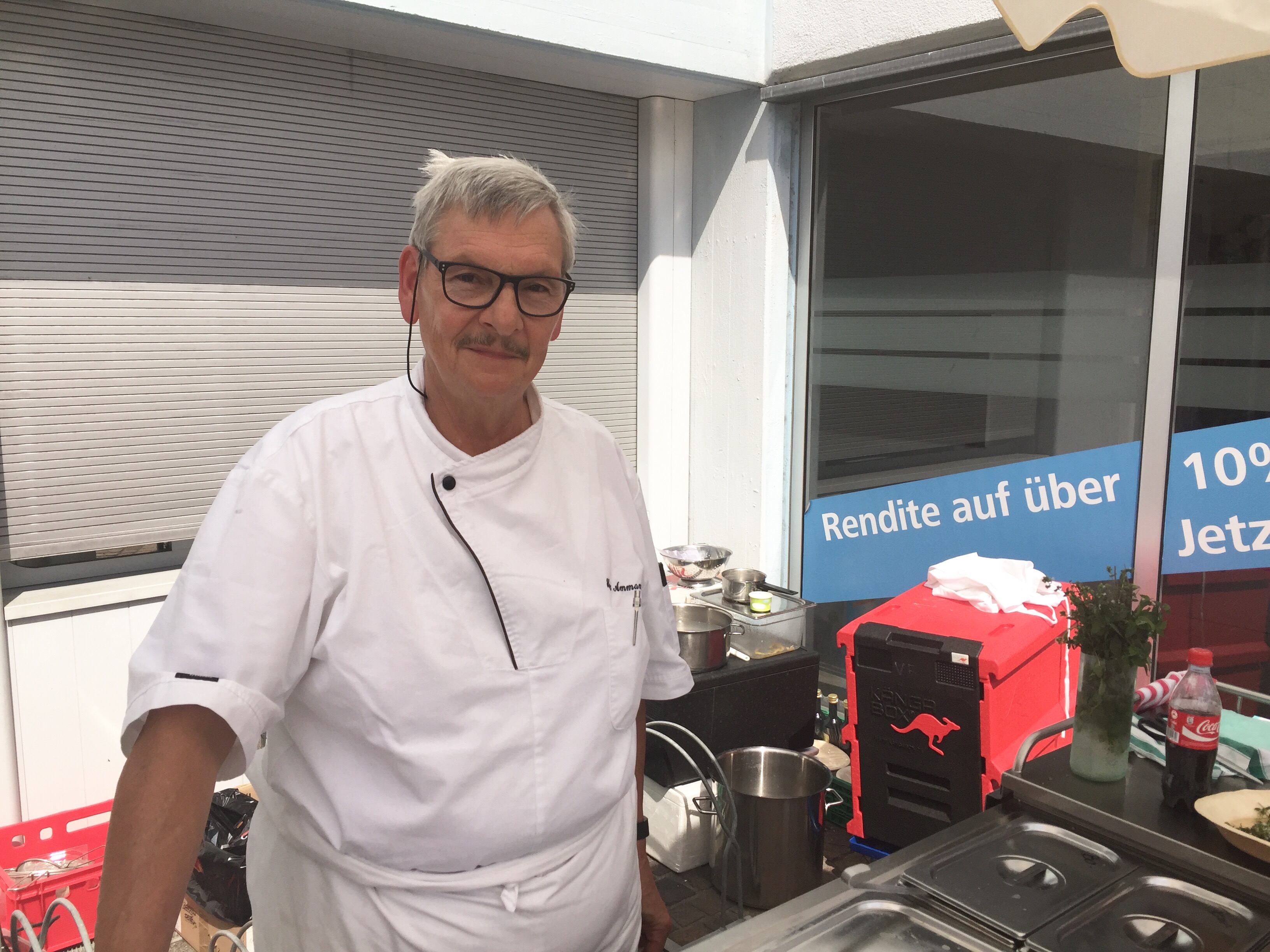 De Heinz Ammann isch en echte Profi, wenns ums Ässe goht. Als ehemoliger Chuchichef leitet er trotz AHV-Alter d Teigwareproduktion im ehemolige Metropol. Hüt het er wider emol de Kochlöffel gschwunge und dene wo zum Arwola cho sind, Teigware mit Pesto und andere Sauce serviirt. Wo mir um viirtelabdrü mit ihm gred hend, isch er recht z fride gsi. Achtzg Menue het er mit sim Mitarbeiter scho verchauft gha und so Werbig für d Lebesmittel gmached, wo d Arwo herstellt und über de Arwola und en Webshop verchauft.