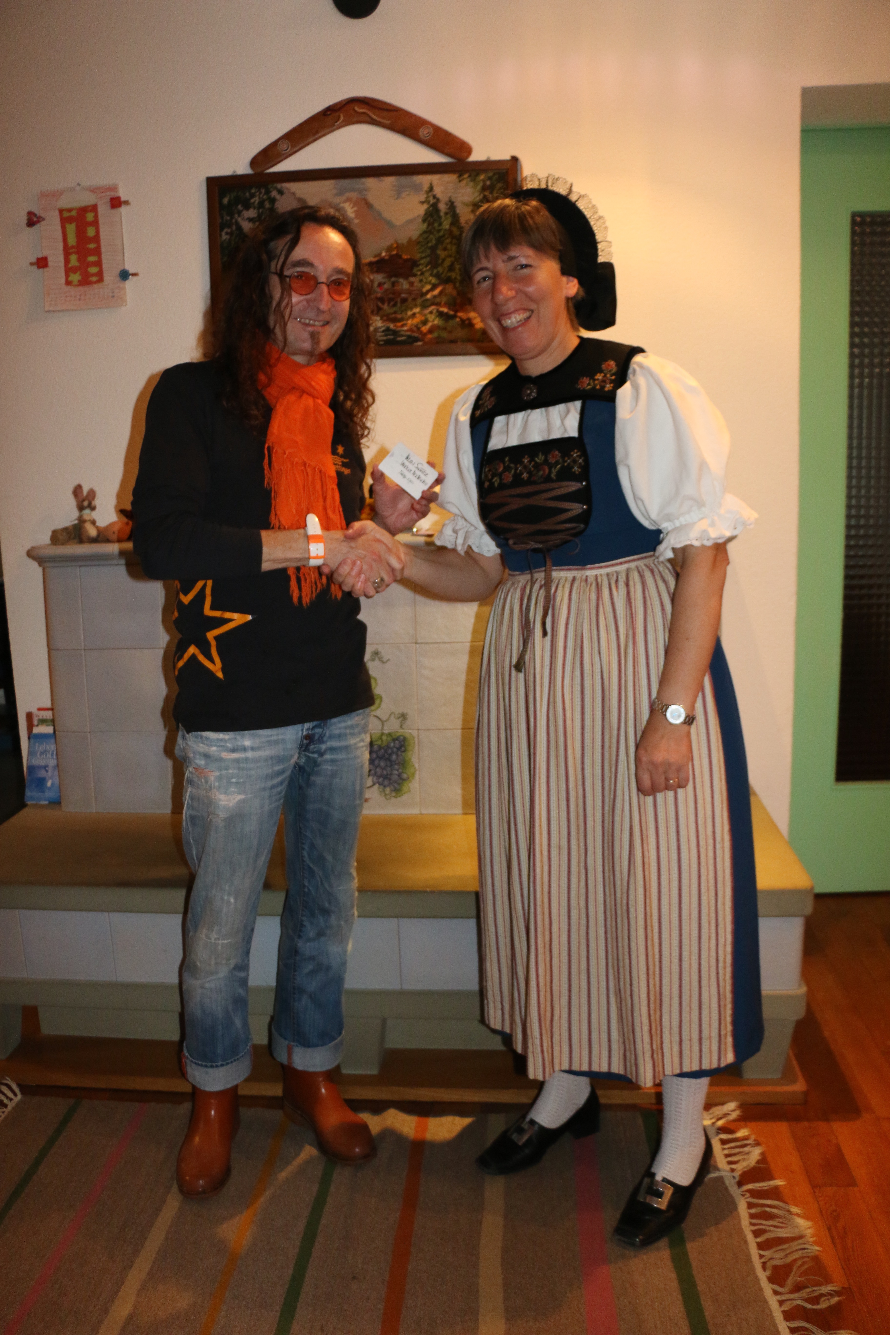 Hüt het de Fabian Schmid ihre de Priis, en 50.- Franke-Guetschii für de Apple Store, überreichd. Dafür het extra ihri Wettiger Sunntigstracht aagleit, wo ihre de Gwünn brocht gha het. D Froid het me ihre chönne agseh und mir vo de Wettiger Nochrichte hend widerum Froid gha, dass si sich so gfroid het.