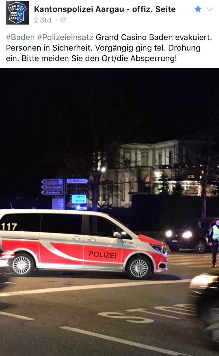 Vili Gäscht hend nach Angabe vom Badener Tagblatt ihri Wertsache im Huus gha und hend müesse warte. Zeh vor nüm het Kapo uf Facebook dann bekannt geh, dass de Iisatz beendet und s Casino wider zugänglich esch.