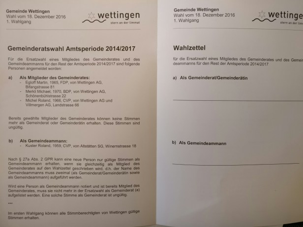 Am 18. Dezember 2016 sind zwei Ersatzwahle. Di erschte Wahlcouvert sind scho wider zruck im Rathuus.