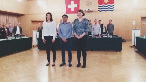 Im Rot sind au drü noii Mitglider in Pflicht gnoh worde (s. Foti obe) und de Rot het e Motion vom Roli Michel für es Jubiläumsjohr 2020 zu 975 Johr Wettige in es Postulat umgewandelt, wo de Gmeindrot entgege gnoh het.