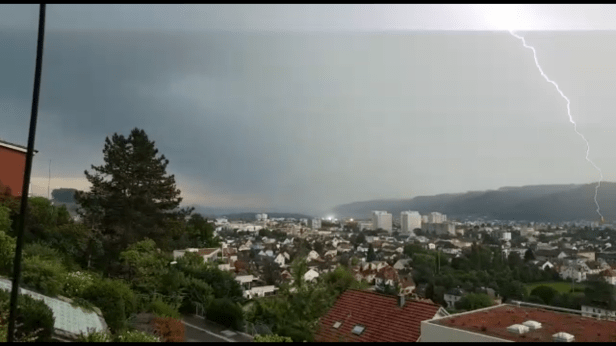 De Blitz und de aaschlüssend Donner isch iidrücklich gsi und iidrücklich isch au es Video, wo de Andreas Wahrstätter vo dem Iischlag gmached het. Er het ois das Video für oich zur Verfüegig gstellt: