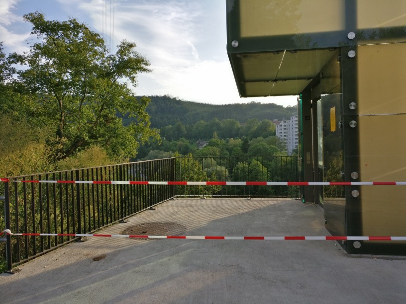 Scho de ganz Tag het es Auto vo de Servicefirma vor em Lift zu de Webermühli gschtande und hüt am Abe isch er abgschperrt gsi. Es grosses Schild sait zudem, dass de Lift “bis auf weiteres ausser Betrieb” sig. De Ziitpunkt isch denkbar ungünstig, isch doch de Serpentinewäg gschperrt, wil er endlich saniirt wird. Vo Wettige us muess me “bis auf weiteres” über d Gwaggelibrugg zu de Webermühli laufe.