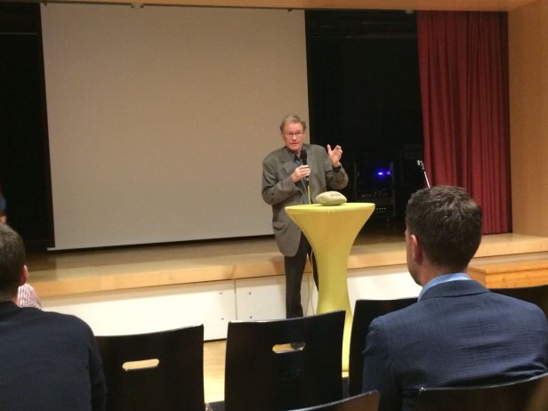 D Co-Präsidäntin CIVIVA, d Lisa Mazzone (GPS), hät d Würdigung of französisch parliert. Trotzdem hät mer verstande, wie dankbar sie esch, dass de Heiner Studer sech so Geduldig ond hartnäckig för e Wiiterentwicklig vom Zivildienst igsetzt hät. D Nationalrötin Rosmarie Quadranti (BDP) hät de Priisträger gwürdigt, will er ned`of di fuul Hut liit, wänn es Ziel erreicht esch, sondern dass er mit Herzbluet deför sorged, dass s Erreichte ned zomene Papiertiger wird sondern au wörkli guet omgsetzt wird ond cha agwändet werde. De Heiner Studer hät berüehrt de graviert Stei entgege gnoh ond bedankt sech herzlich för die Wertschätzig. Er hät au d`Erwartig g`üssered, dass mer i de Politik d Arbet, wo d Lüüt im Zivildienst leistet, anerchännt ond ned weder meh Hörde in Weg sölled gstellt werde.
