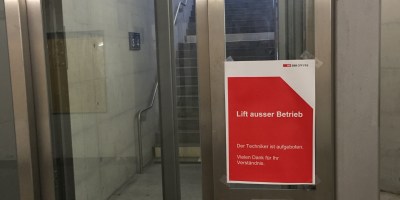 Am Bahnhof isch im Momänt de Lift zu Gleis 3/4 defekt